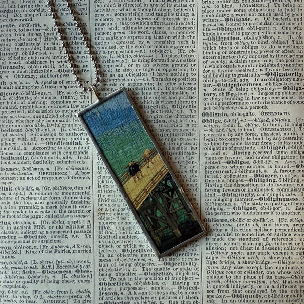 All of our pendants are created from the original source material, curated and up-cycled directly from vintage children's books, dictionaries, old calendars, and other printed materials diverted from the waste stream. We NEVER duplicate, copy or reproduce images. This means your pendant is a unique, one-of-kind item, and we enjoy good "copyright karma" by respecting the intellectual property of the original artists!