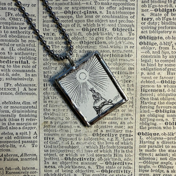 All of our pendants are created from the original source material, curated and up-cycled directly from vintage children's books, dictionaries, old calendars, and other printed materials diverted from the waste stream. We NEVER duplicate, copy or reproduce images. This means your pendant is a unique, one-of-kind item, and we enjoy good "copyright karma" by respecting the intellectual property of the original artists!