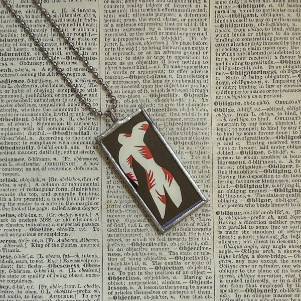 All of our pendants are created from the original source material, curated and up-cycled directly from vintage children's books, dictionaries, old calendars, and other printed materials diverted from the waste stream. We NEVER duplicate, copy or reproduce images. This means your pendant is a unique, one-of-kind item, and we enjoy good "copyright karma" by respecting the intellectual property of the original artists!