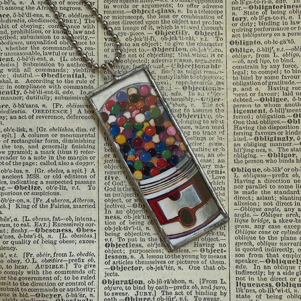 All of our pendants are created from the original source material, curated and up-cycled directly from vintage children's books, dictionaries, old calendars, and other printed materials diverted from the waste stream. We NEVER duplicate, copy or reproduce images. This means your pendant is a unique, one-of-kind item, and we enjoy good "copyright karma" by respecting the intellectual property of the original artists!