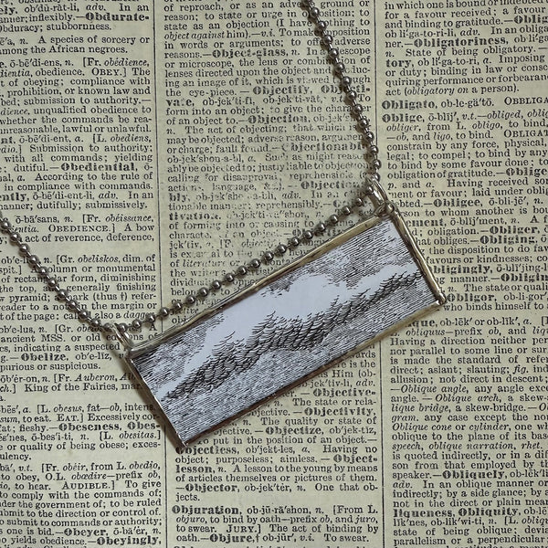 All of our pendants are created from the original source material, curated and up-cycled directly from vintage children's books, dictionaries, old calendars, and other printed materials diverted from the waste stream. We NEVER duplicate, copy or reproduce images. This means your pendant is a unique, one-of-kind item, and we enjoy good "copyright karma" by respecting the intellectual property of the original artists!