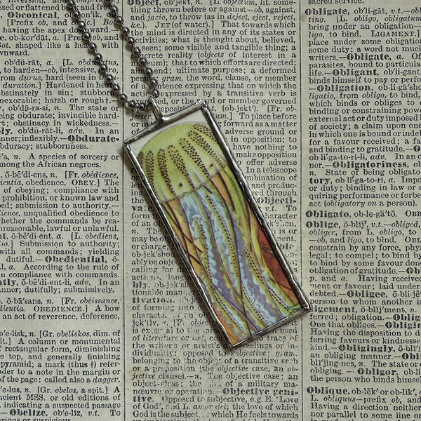 All of our pendants are created from the original source material, curated and up-cycled directly from vintage children's books, dictionaries, old calendars, and other printed materials diverted from the waste stream. We NEVER duplicate, copy or reproduce images. This means your pendant is a unique, one-of-kind item, and we enjoy good "copyright karma" by respecting the intellectual property of the original artists!