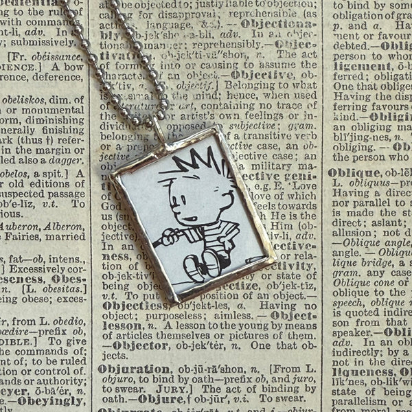 All of our pendants are created from the original source material, curated and up-cycled directly from vintage children's books, dictionaries, old calendars, and other printed materials diverted from the waste stream. We NEVER duplicate, copy or reproduce images. This means your pendant is a unique, one-of-kind item, and we enjoy good "copyright karma" by respecting the intellectual property of the original artists!