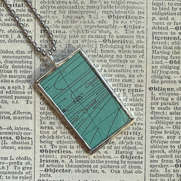 All of our pendants are created from the original source material, curated and up-cycled directly from vintage children's books, dictionaries, old calendars, and other printed materials diverted from the waste stream. We NEVER duplicate, copy or reproduce images. This means your pendant is a unique, one-of-kind item, and we enjoy good "copyright karma" by respecting the intellectual property of the original artists!